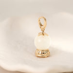 This enchanting charm features a luminous moonstone sphere cradled in an elegant base etched with the phases of the moon.