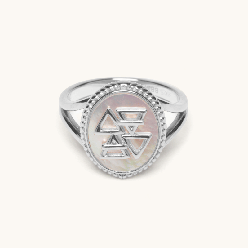 Crafted with a Mother of Pearl base in 925 Sterling Silver.