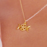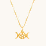 Elevate your witchy style with this minimalist Triple Goddess Pentagram necklace.