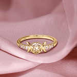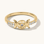 The pentagram, an ancient symbol of protection and balance, is intertwined with the Triple Goddess, representing the Maiden, Mother, and Crone.