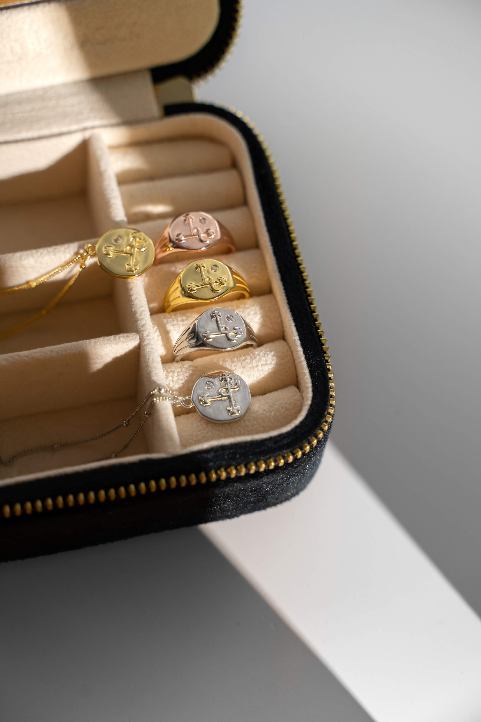 Medieval legends say that all witches were derived from Lilith. Celebrate your femininity, your witchy power and your equality with this unique Lilith Signet Ring. Featuring a raised Lilith Sigil, studded with a shinning stone and organic edges, this signet is the perfect minimalist but powerful statement piece for today's witch.