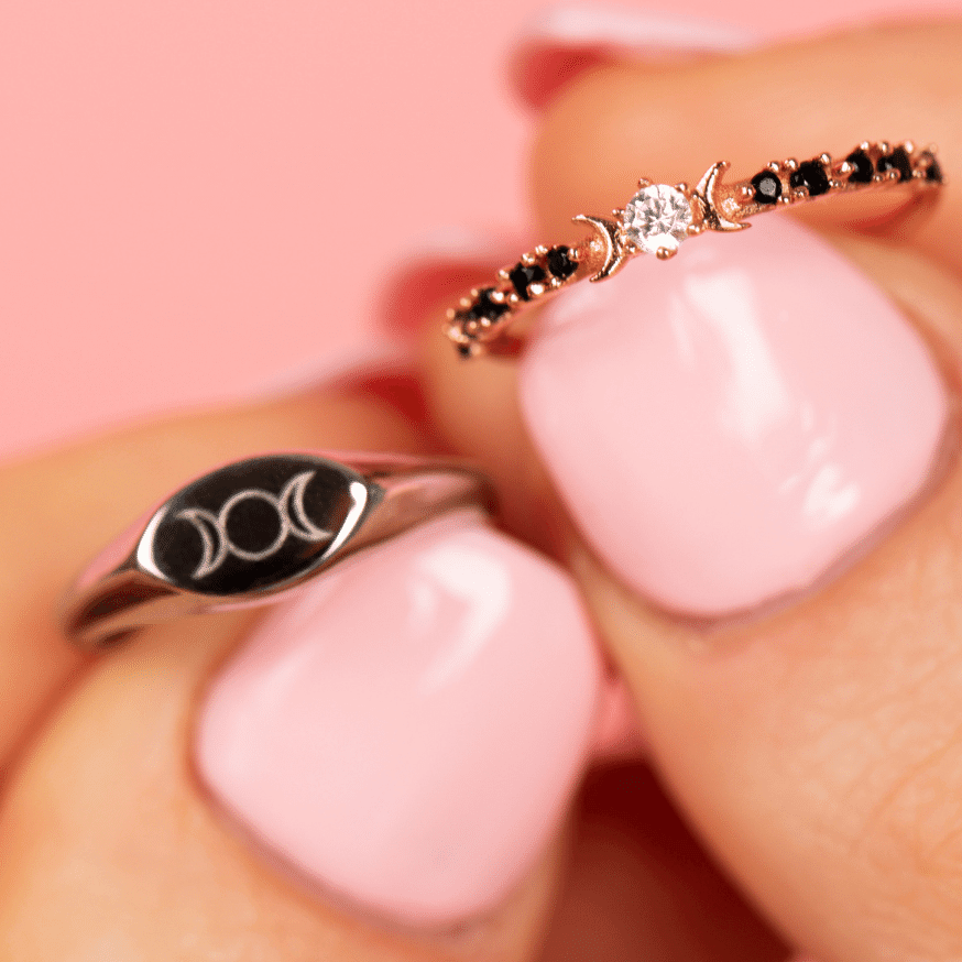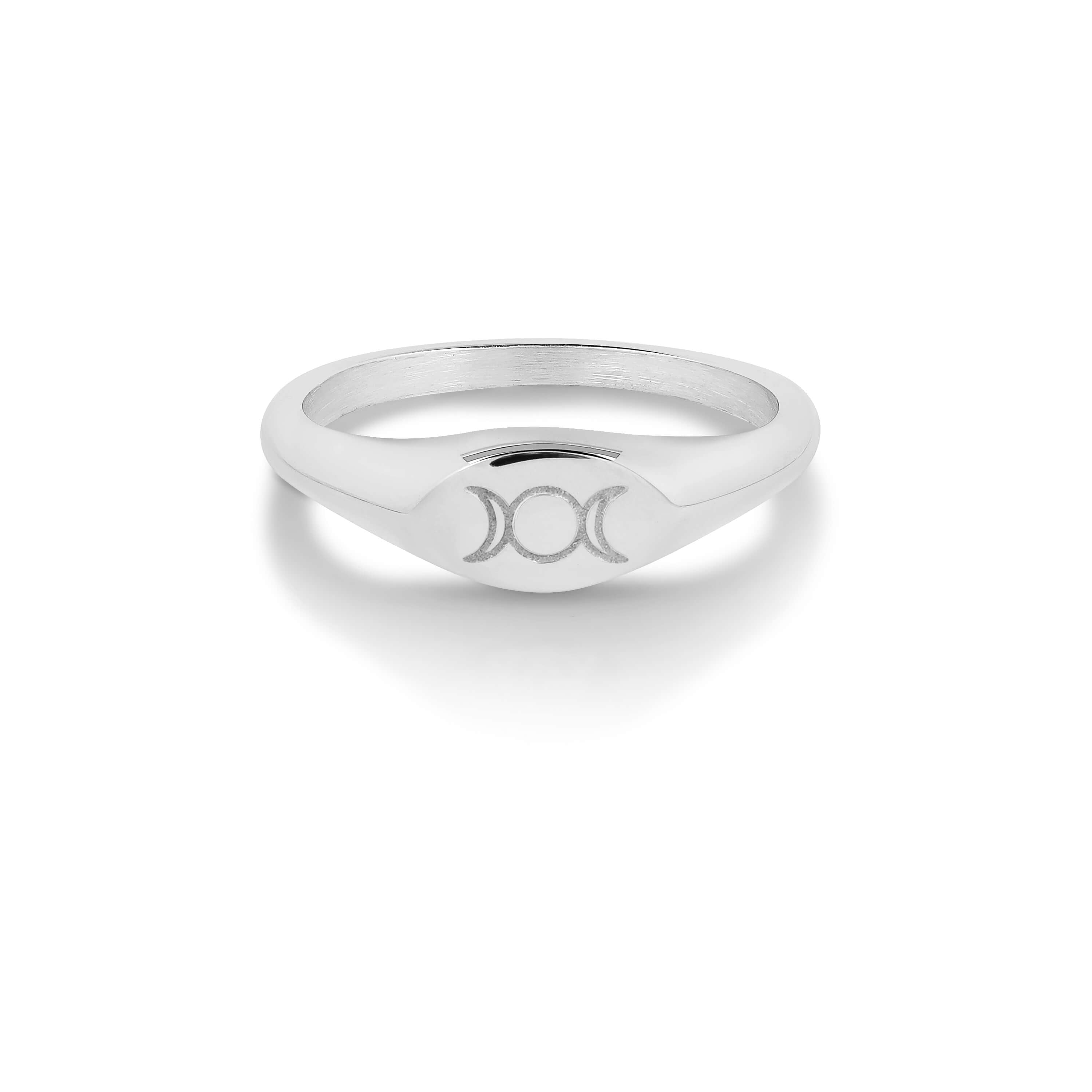 Embrace and tap into the ever-present wisdom of life’s phases with this modern Triple Goddess Mini Signet Ring.