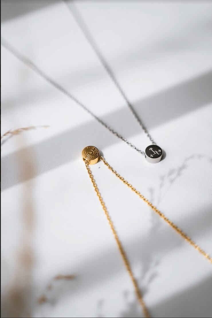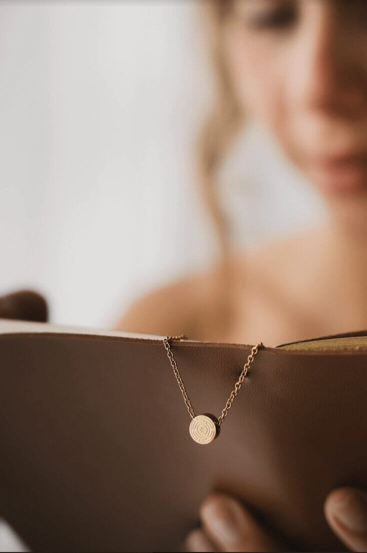 We've engraved our signature mini pendant necklace with Hecate's Wheel. Wear it alone for a dose of understated magick, or layer this pretty necklace with other favorite pieces.