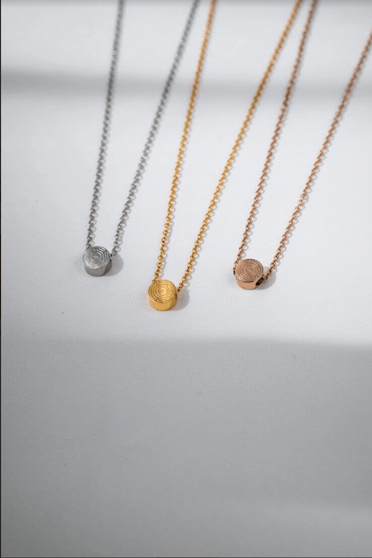 Circle pendant is 0.3 inches / 0.8 cm in diameter.
