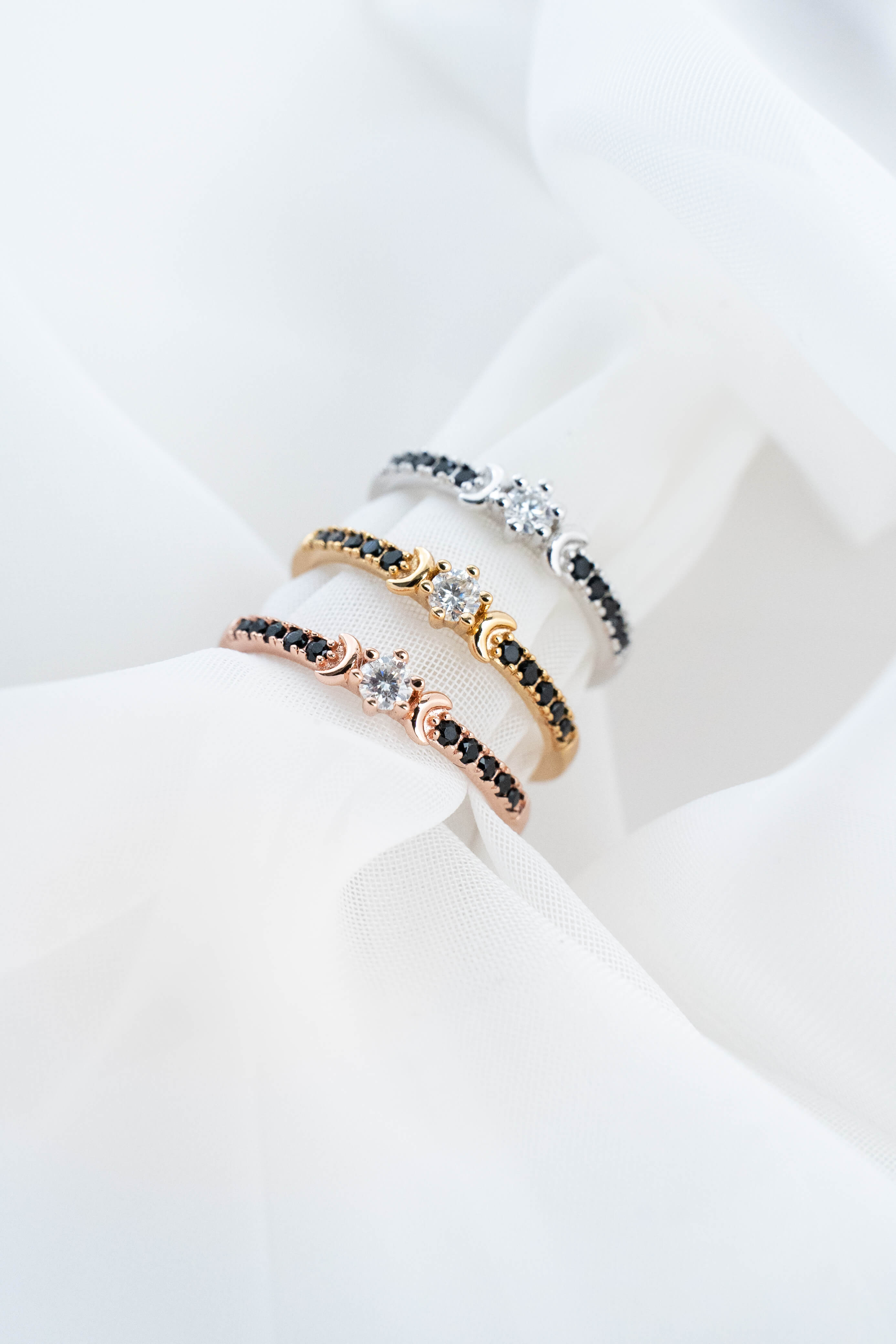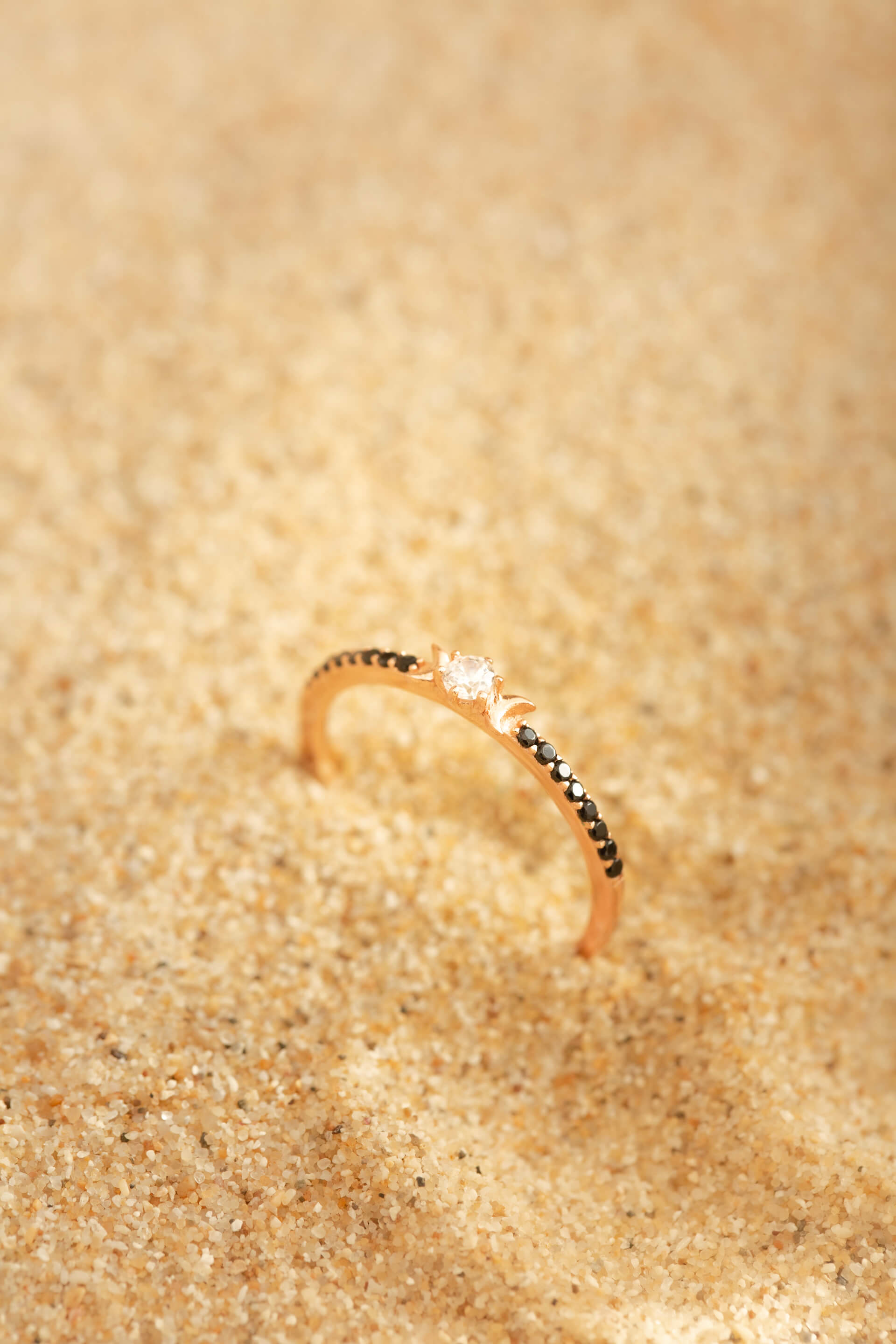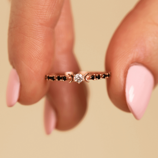 The perfect balance of glam and subtlety, the Triple Goddess Symbol is set elegantly in the middle of the ring, highlighted by a stunning crystal white moissanite stone.