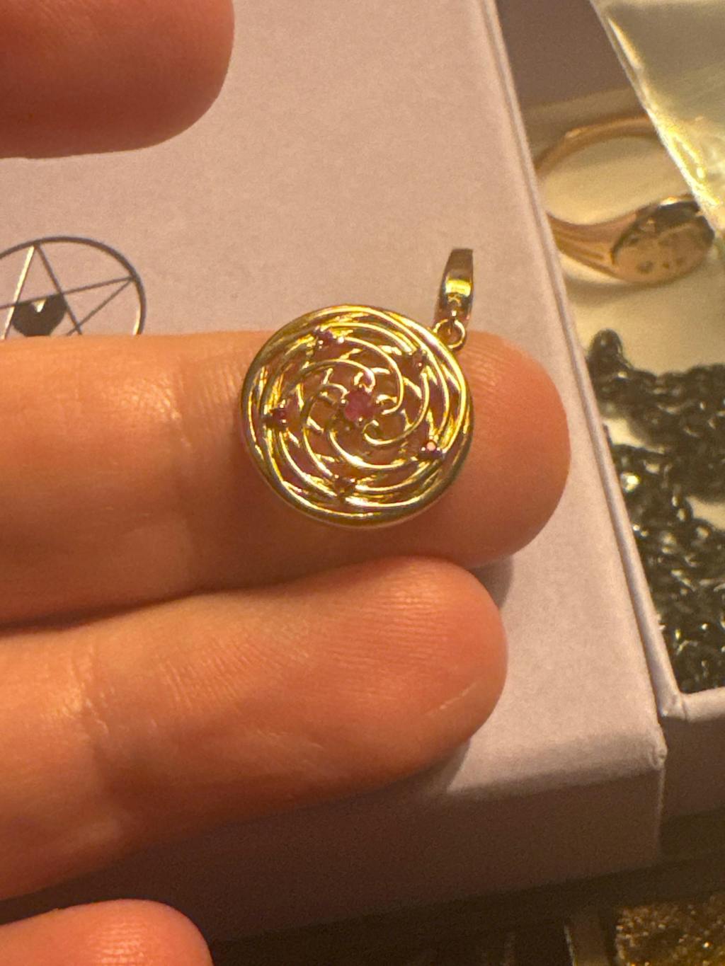 Charm is approximately 15mm in diameter. Clasp is 10mm H.
