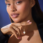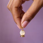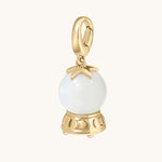 This enchanting charm features a luminous moonstone sphere cradled in an elegant base etched with the phases of the moon.