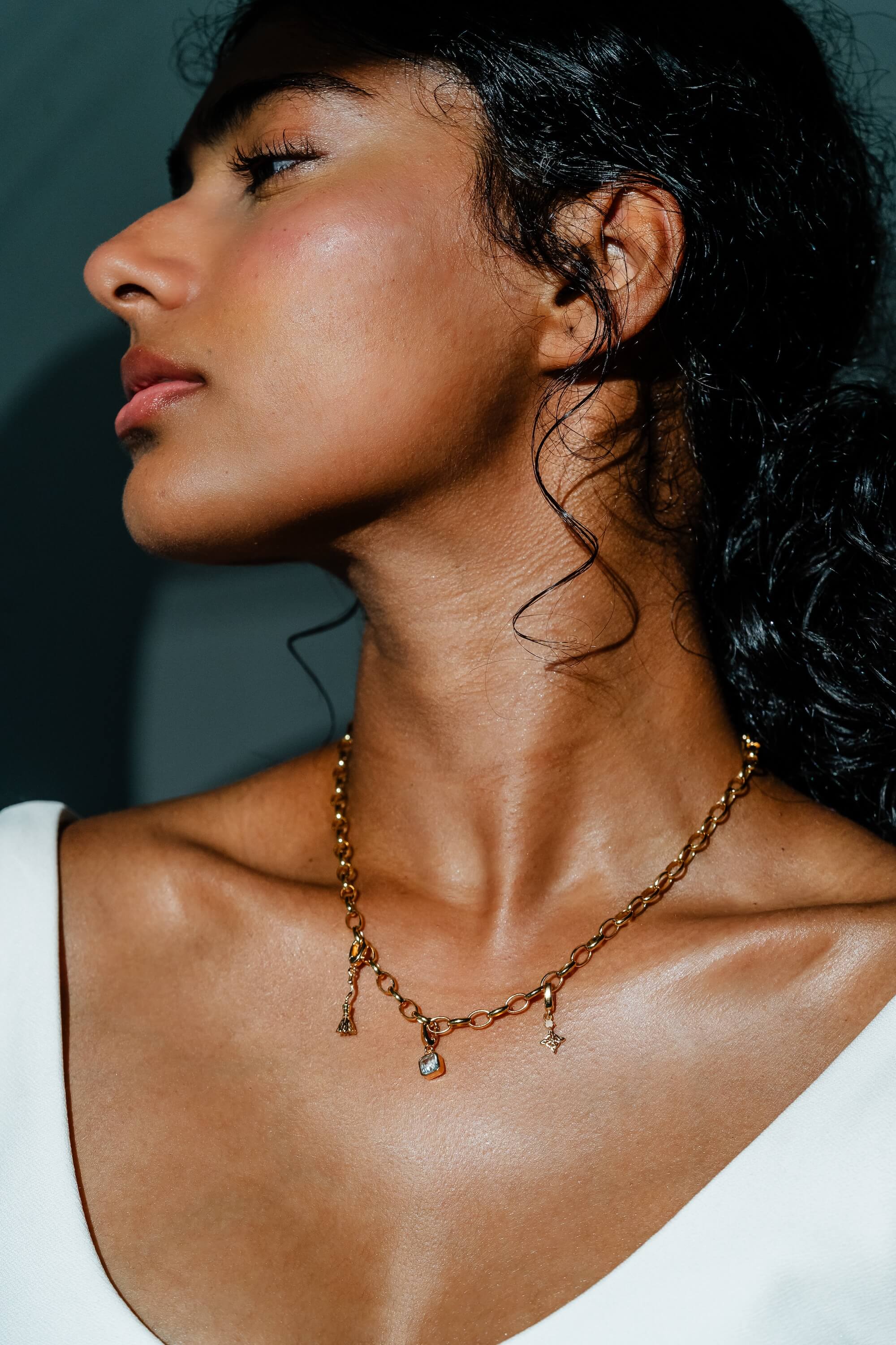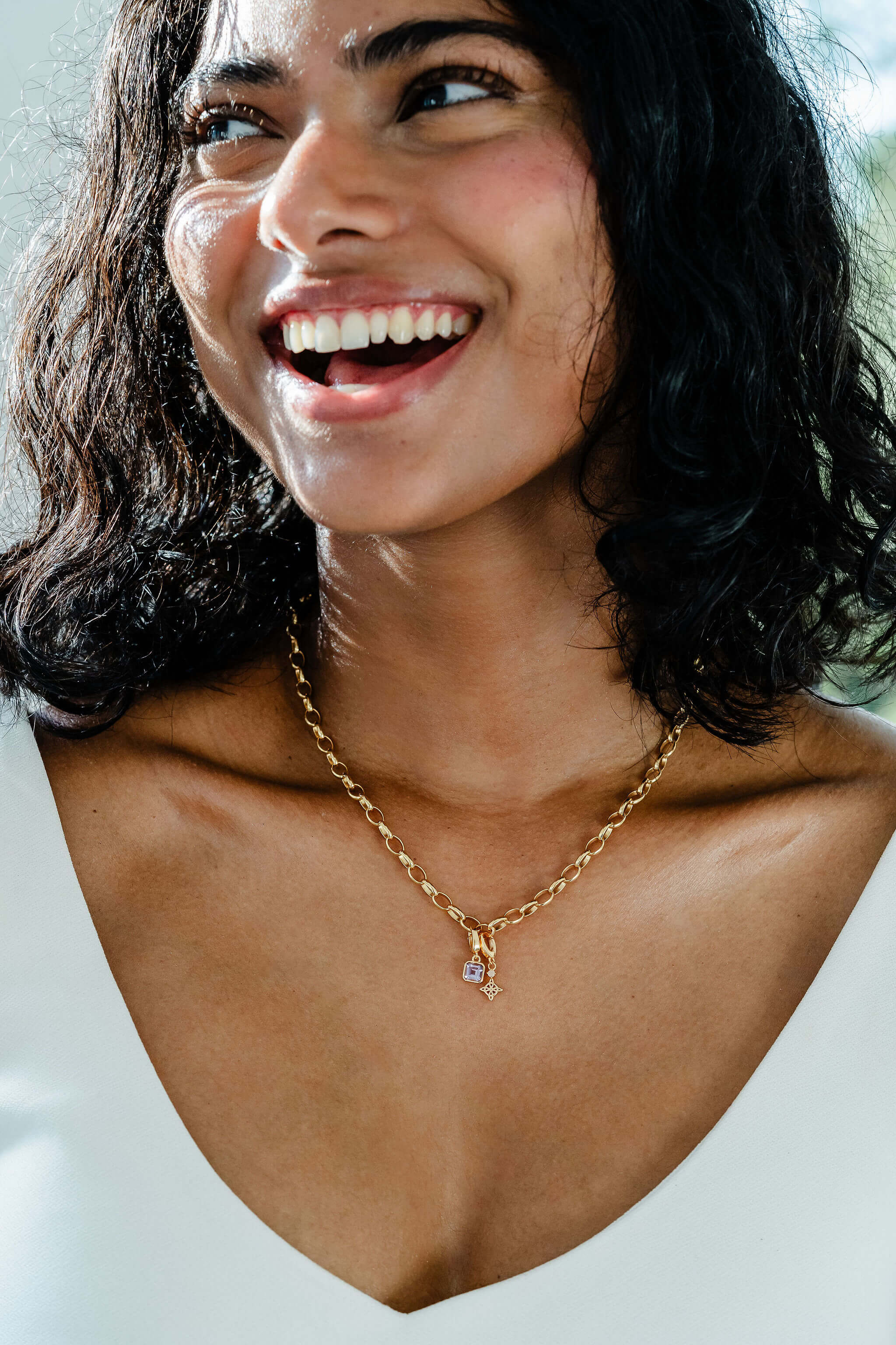The sparkling moonstones that enhance the Witch’s Knot celebrate our rhythms that move in tandem with the pull of the moon’s power. The moonstone is the stone of new life cycles and is associated with fortune-telling, balance, passion, new beginnings and vigorous strength.