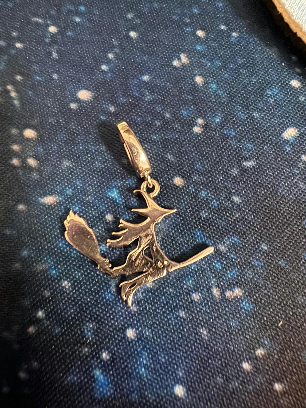 The motif of a wise witch riding her broomstick is a symbol of the power of transformation and the ability to transcend limitations. Wear it as a reminder to own your magick and break free from limitations.