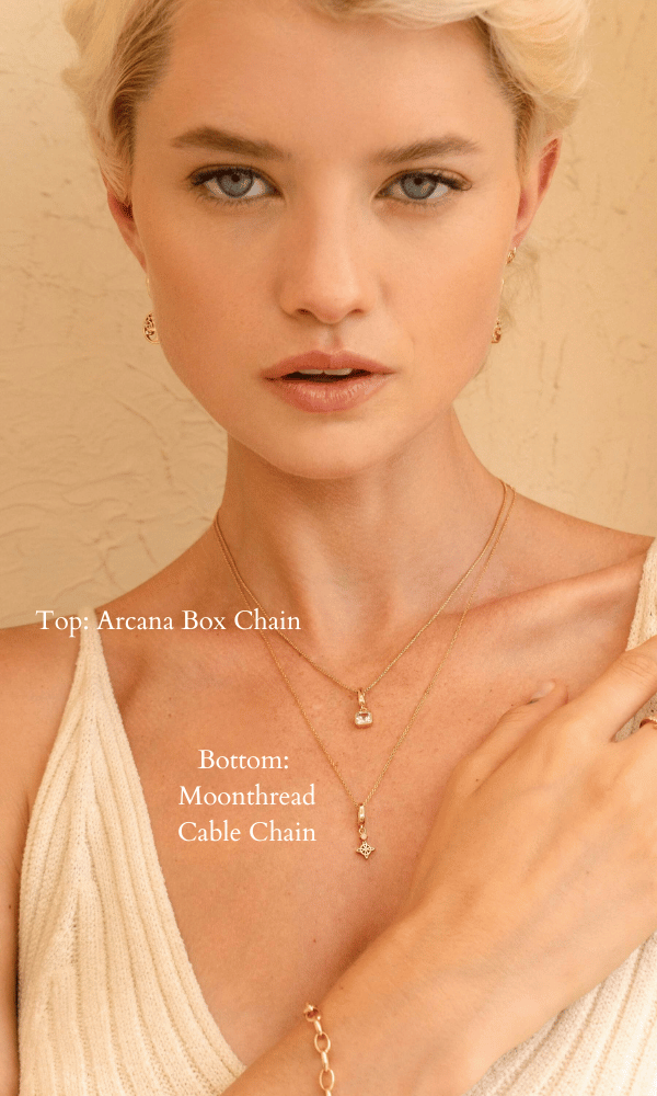 As light as a moonbeam and just as enchanting, the Moonthread Chain offers a delicate yet durable way to wear your favorite charms. Its barely-there shimmer adds a whisper of elegance to any look. Wear it solo for subtle magick or layer with intention.