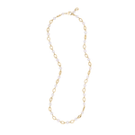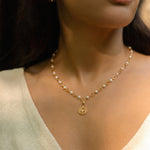 A modern witch’s take on timeless elegance. This charm-ready necklace pairs luminous freshwater pearls with sleek oval links—perfect for layering or adorning with your favorite goddess charms.