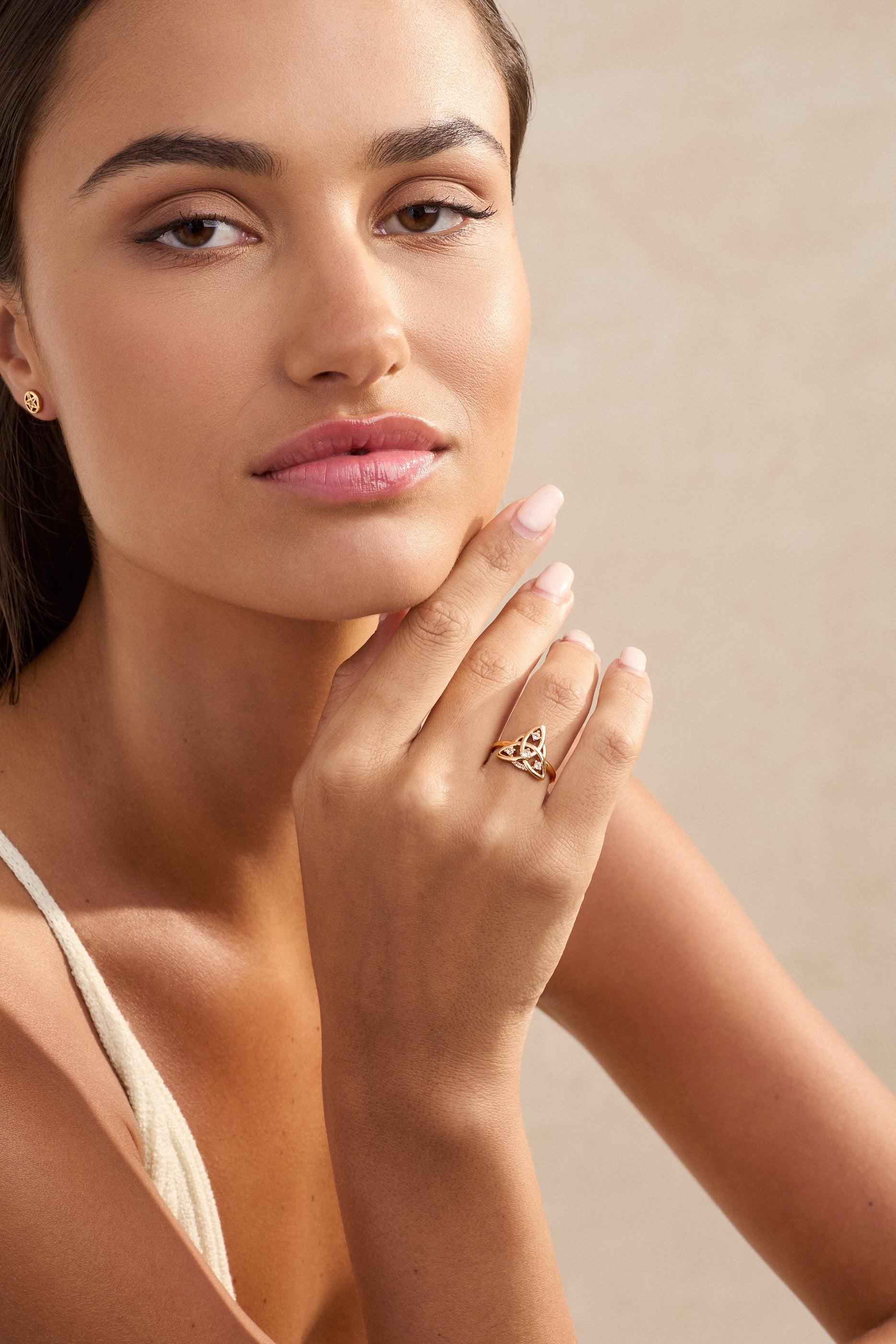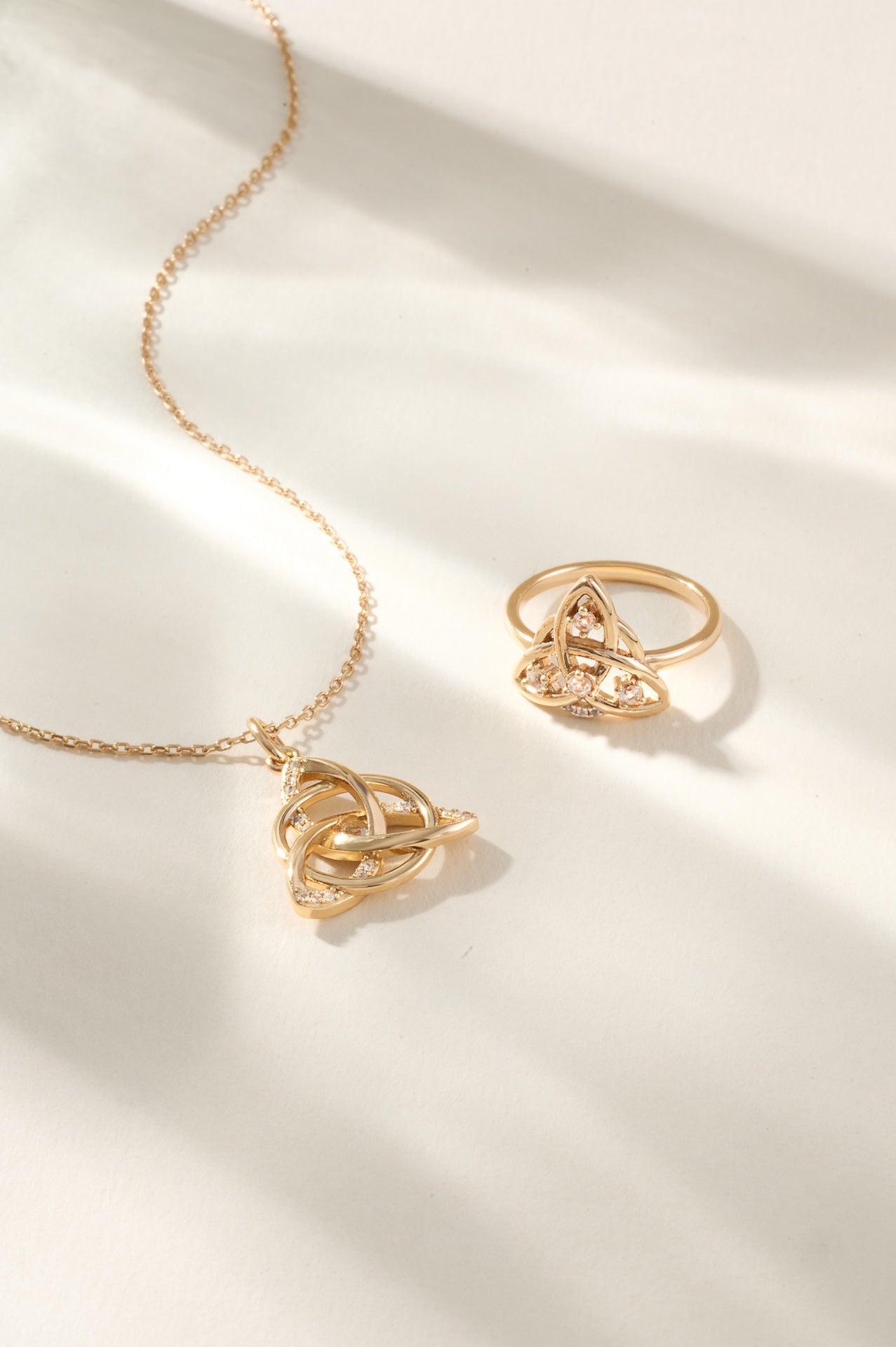 I absolutely love the triquetra ring. I chose the rose gold option, and it does not disappoint. The gems throughout the ring just make it even more beautiful. I'll definitely be back to order more items.