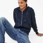 I had been waiting for this sweatshirt to come out as a hoodie, and was so pleased to see it in blue. It’s a gorgeous midnight blue, nearly black. The inside is velvety soft. I want to wear this everyday! Now I just need matching sweatpants….please 🙏🏻