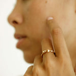 I love this ring, I think it’s so cute simple I really like the design and shape, However it’s a bit more flimsy than I was expecting. I wore it for one day and it snagged in my pants and stretched out. I was worried it would break so I took it to a jeweler to have him close it up for me.